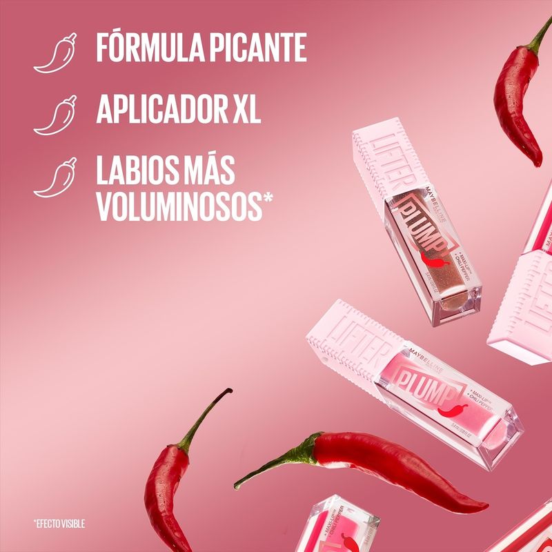 Conocé el nuevo Lifter Plump de Maybelline New York, formulado con Maxi-Lip y extracto de chile, que ofrece un efecto plump instantáneo y duradero, para lucir labios más gruesos y definidos en solo segundos. Con su aplicador XL, este labial tipo gloss transforma tus labios con una sola pasada, dejándolos con más volumen, hidratados y brillantes.