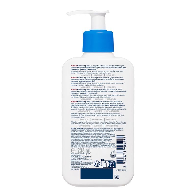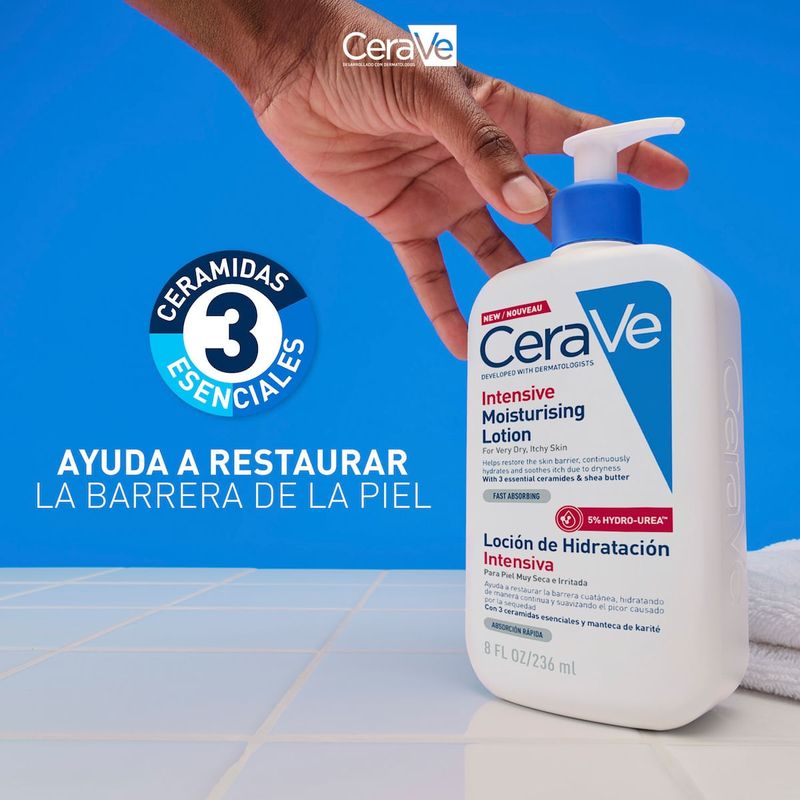 DescripcionLa Loción de Hidratación Intensiva de CeraVe es un tratamiento dermatológico especializado que combina el exclusivo complejo Hydro-Urea™ con tecnología MVE para brindar hidratación profunda y duradera. Su fórmula cremosa pero ultraliviana se funde con tu piel, creando una sensación de alivio instantáneo sin esa molesta capa grasosa que dejan otras cremas.