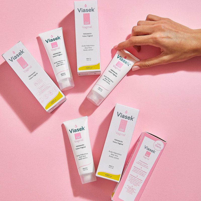 Viasek Gel, es un Hidratante Vulvo-Vaginal de USO DIARIO con 2 tipos de Ácido Hialurónico y Aloe Vera