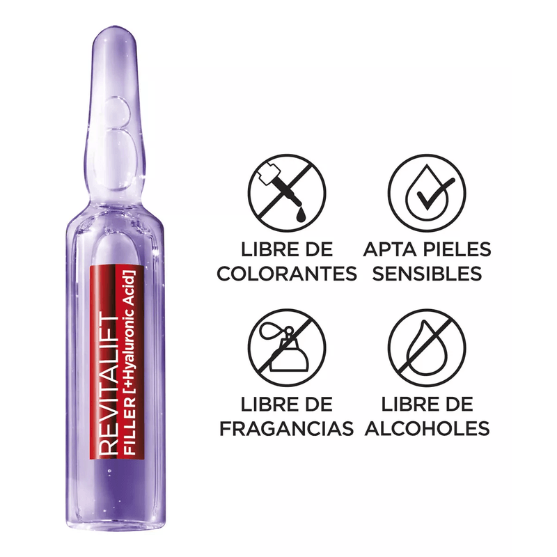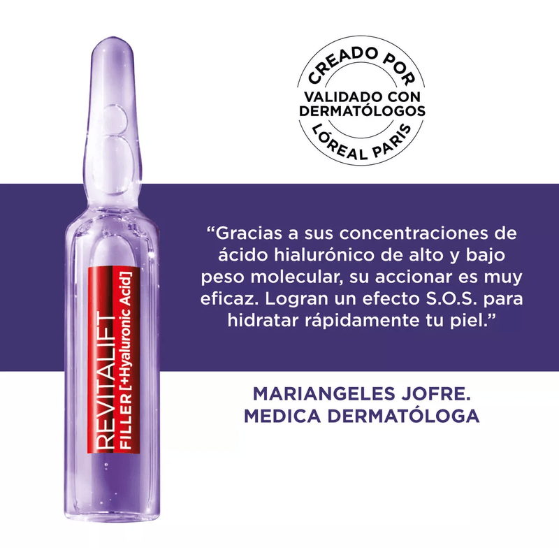 Ampollas rellenadoras con Ácido Hialurónico puro + Vitamina B5. Tratamiento 7 días: devuelve volumen e hidrata intensamente.