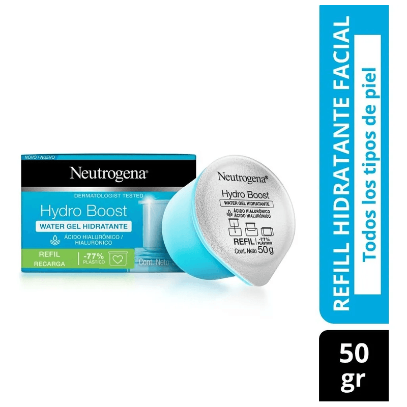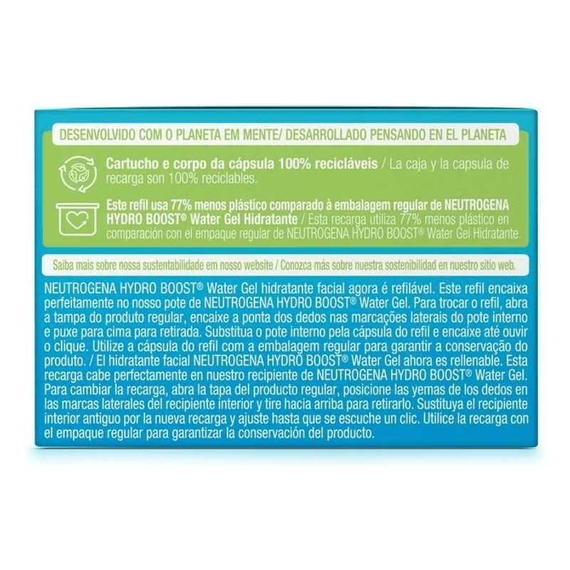 La recarga utiliza un 77% menos de plástico en comparación con el pack de NEUTROGENA HYDRO BOOST Water Gel.
