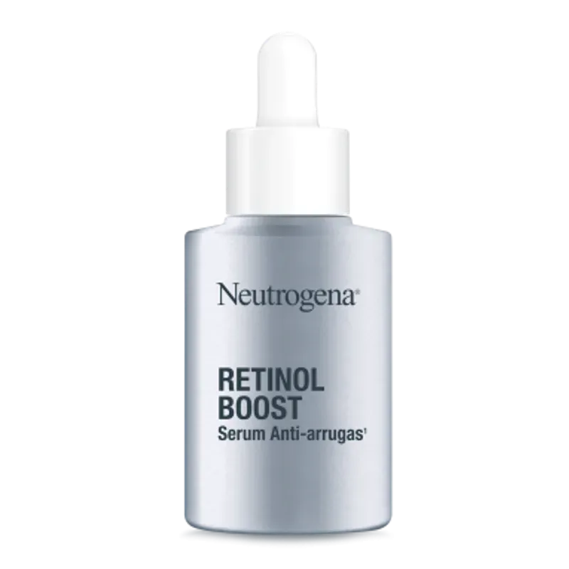 Serum Retinol Boost Anti-Arrugas NEUTROGENA® 30ml: Serum de rápida absorción con retinol, que complementa la renovación celular de la piel para combatir los signos del envejecimiento y proporcionar una piel visiblemente más suave y radiante. Ayuda a reparar visiblemente las líneas de expresión, las arrugas y unifica el tono de la piel a partir de 7 días Formulado con 0.3% de retinol puro, un tipo poderoso de vitamina A recomendada por dermatólogos, que ayuda a mejorar la apariencia de las líneas finas, la piel opaca, las arrugas y el tono desigual de la piel. Científicamente demostrado que es superior a los ésteres de retinol comúnmente utilizados. A su vez, cuenta con complejo calmante que nutre la piel y ayuda a minimizar las causas potenciales de incomodidad para una buena experiencia de uso.