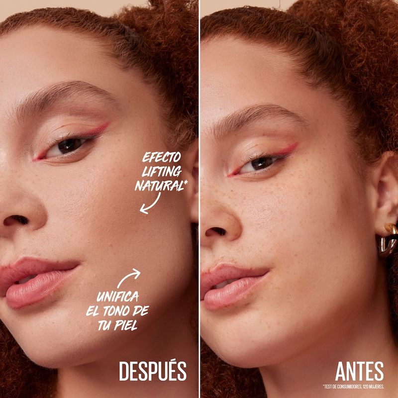 Maquillaje facial multiuso. Evitar aplicar en el área ocular. Test de consumidores, 120 mujeres.